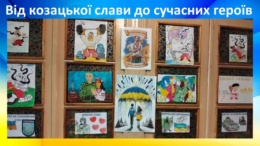 До Дня захисника України в нашому закладі під керівництвом педагога-організатора Пащенко Оксани відбулася виставка дитячих робіт . Учні створювали малюнки, присвячені нашим воїнам, які боронять Україну та рідній країні. У кожній роботі відчувалася щирість дитячих сердець, любов до рідної землі та вдячність тим, хто оберігає наш мир і спокій.