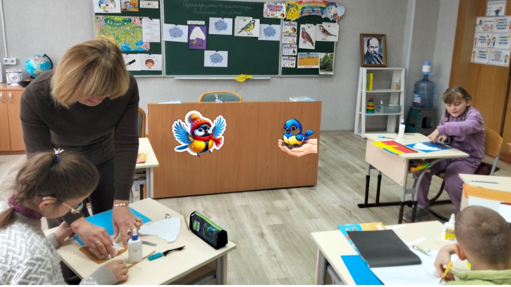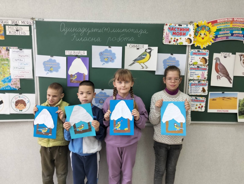 Коли всі аплікації були готові, у класі влаштували виставку дитячих робіт. Вони із гордістю презентували свої творіння, розповідали, як планують підгодовувати синичок. Кожна робота — особлива, неповторна, сповнена тепла і турботи.